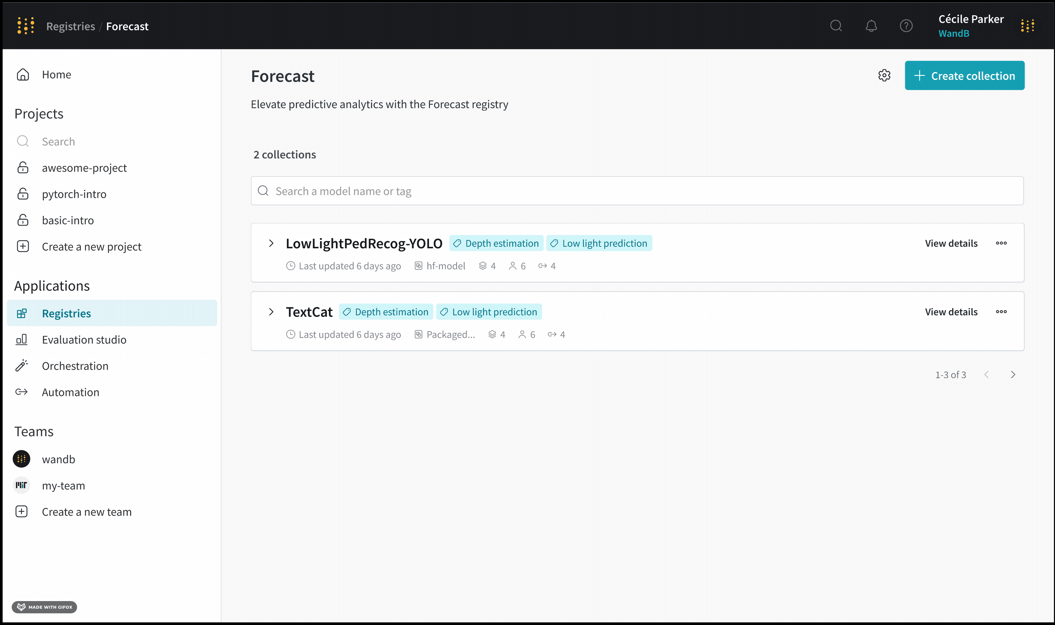 A collection とは、レジストリ内でリンクされたアーティファクト バージョンのセットです。それぞれのコレクションは、個別のタスクやユースケースを表します。
