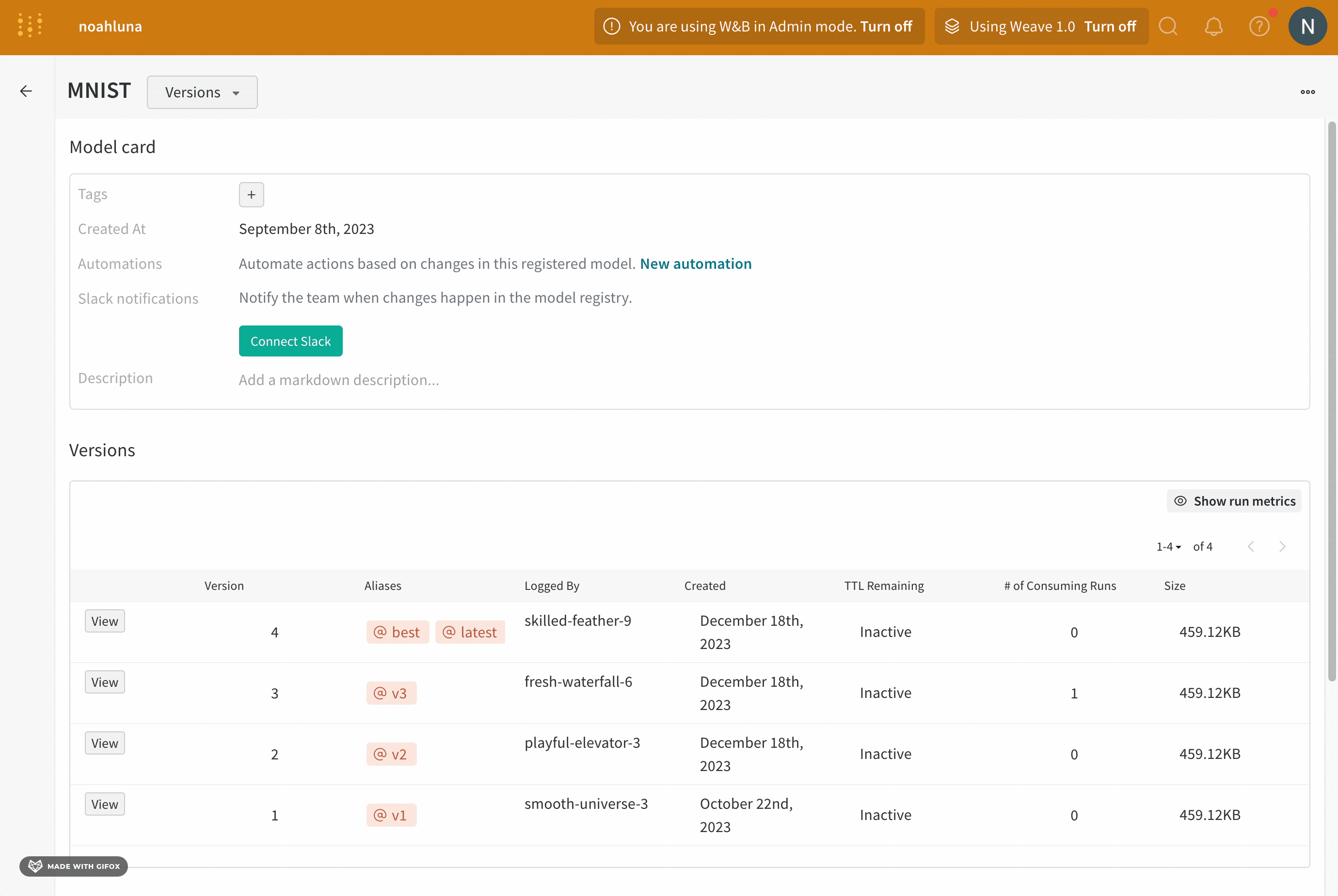 がまだ存在しない場合、W&B は登録されたモデルを作成します。